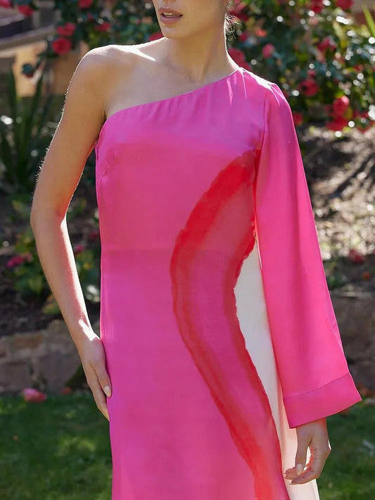 50.00 CHFElegantes Maxikleid mit Palmenprint und einseitigem Träger