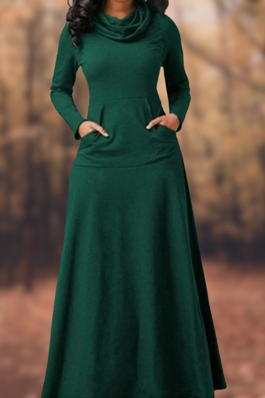 99.92 CHFMia® | Lässiges langärmeliges Maxikleid mit Rundhalsausschnitt und Tasche
