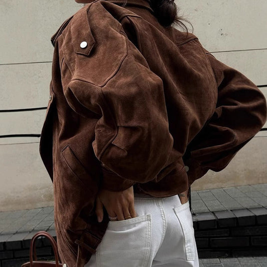 84.99 CHFOversize Bomberjacke im Wildleder-Look mit asymmetrischem Reißverschluss