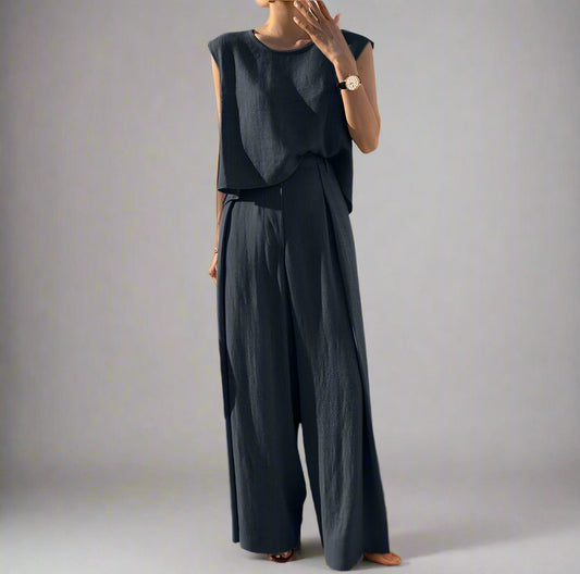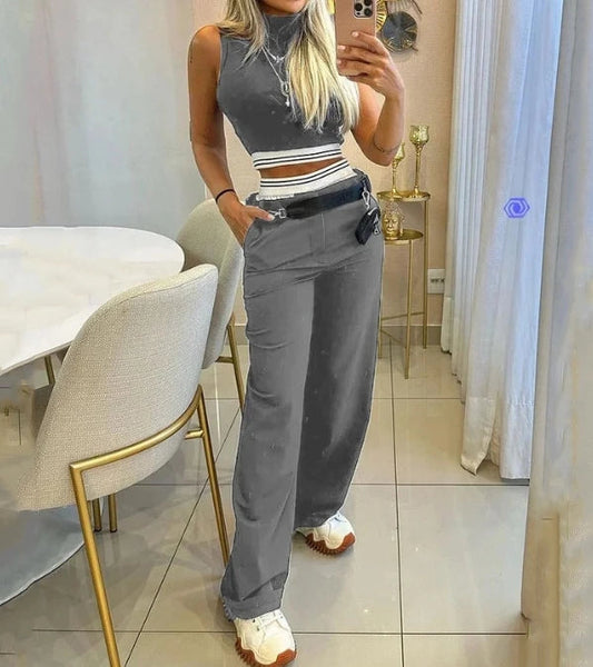 60.00 CHFOli® | Ärmelloses Rundhalsausschnitt-Oberteil mit weitem Hosen-Set