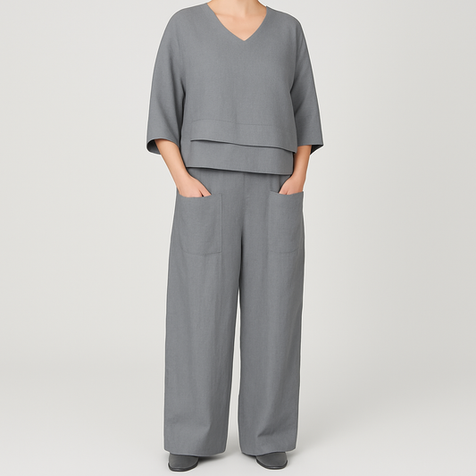 64.99 CHFLeinenmischung Oberteil mit Schlitz vorne und weite Hose Set