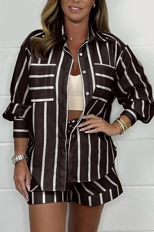 54.99 CHFGestreiftes Hemd mit Reverskragen und langen Ärmeln mit Shorts-Set mit elastischem Bund