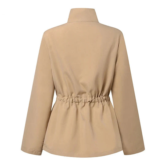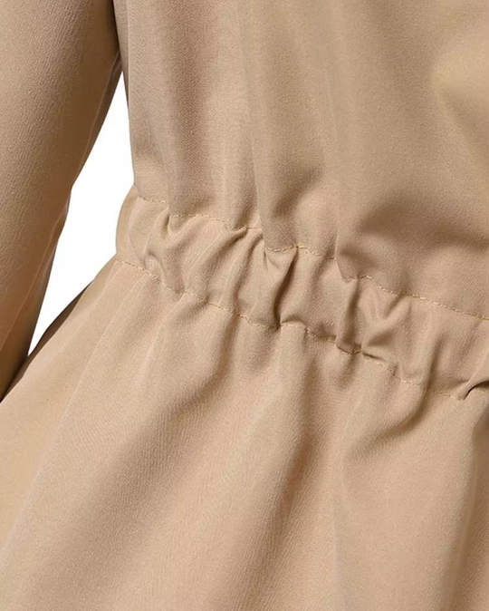 Diese leichte Jacke aus 100 % Polyester verfügt über einen schmeichelhaften Kordelzug in der Taille, volle Ärmel und praktische Fronttaschen.