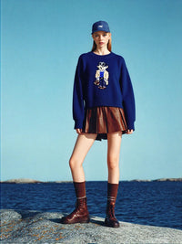 Stell dir vor, du schlüpfst in etwas, das sich an einem kühlen Morgen wie eine warme Umarmung anfühlt – weich, charmant und unwiderstehlich schick. Dieser Teddybär-Pullover vereint den Komfort eines hochwertigen Kaschmir-Baumwoll-Mix mit einem verspielten bestickten Bärenmotiv, das überall Gesprächsstoff liefert. Der mittel dehnbare Strick bewegt sich mühelos mit dir, während die klassische O-Ausschnitt-Silhouette zeitlos und edel bleibt.